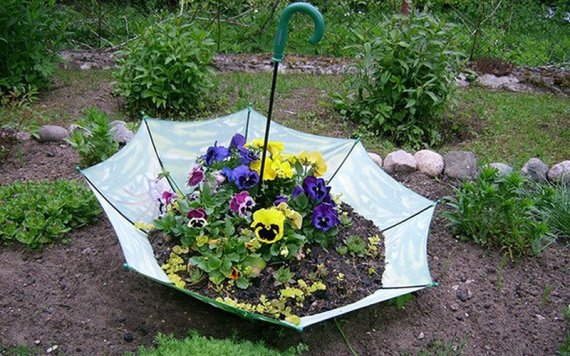 Дати друге життя старим речам можна наповнивши їх землею й висадивши в неї рослини. Підійдуть для цього майже будь-які предмети: від надбитої чашки до старої іржавої ванни й трухлявого човна. У нагоді стануть також зношені чоботи або набридлі джинси — з них вийде оригінальна заміна горщикам. Не менш креативно виглядатиме квітник, облаштований у багажнику неробочого авто.