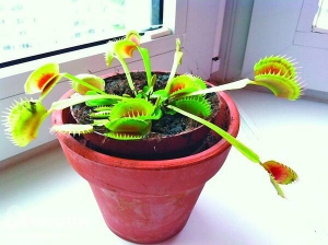 — Невибагливі. Їх не удобрюють — поживні речовини отримують від здобичі. Не годують людськими продуктами чи кров'ю — тільки живими комахами. Рослини пересаджують рідко. Хіба що на поверхні ґрунту з'явилася цвіль, земля погано вбирає воду або якщо потрібно розділити. Пересаджені живуть три–п'ять років.