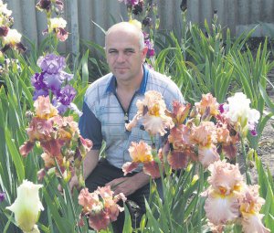 Анатолій Шаповал, 43 роки, із села Мишурин Ріг Верхньодніпровського району Дніпропетровської області вирощує понад 500 кущів ірисів. Має колекційні сорти і новинки. Їх купує через інтернет в Австралії та США.