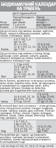 — Із насінням працюйте на Висхідний місяць. Редиску сійте у дні Кореня. Медоносні культури — фацелію, розторопшу — в дні Квітки. Для сапання та проріджування ранніх сходів теж враховуйте дні плодоутворення. Висхідний та Низхідний місяці до уваги не беріть.