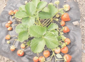 На одній грядці виходить 1280 кущів. При загущенні полуниця дає більший урожай. Після посадки грядки накривають целофановою плівкою. На третій день на кущах розпочинають відростати молоді листки.