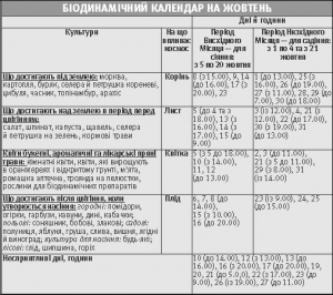 У жовтні збирають останню городину та сіють насіння для нового врожаю. Якщо робити все за біодинамічним календарем, плоди зберігатимуться найкраще, насіння дасть гарні сходи, зауважує автор календаря Микола Дмитрієв. Він займається біодинамікою. Наука вивчає вплив космосу на розвиток рослин.