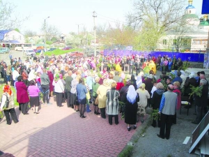 26 квітня о 9.00 у центрі селища на пустирі перед магазином кілька сотень людей збираються святити вербу. До храму Святого Володимира, за 20 м, їх не пускають.