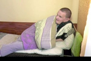 — Агресії в нього немає, лише самооборона. Може ховатися під одіяло. Але розуміє побутові речі. Коли покупали і дали спортивний костюм, то сам одягнувся. Часто вивозимо на вуличні прогулянки. З інтересом роздивляється, як будівельники ремонтують фасад. Спочатку і ложку до рук не брав. Тепер їсть самостійно, хоч і розливає. Набрав у вазі, — говорить Зіновій Волощук.