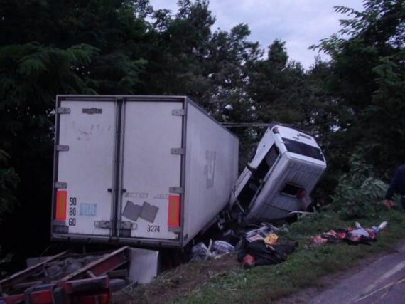 Вантажівка належить тернопільській фірмі. Перевозила цукерки. Віктор Пиріг дістав незначні травми. Запевняє, що заклинило кермо. Був тверезий.