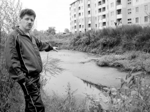— До нас зливають гівно з половини міста: з приватних будинків, з маленьких хутрових фірм, — розповідає офіцер 40-річний Сергій Бєрцен. — Водоканал вже років 20 використовує яму як аварійний резервуар для міських нечистот. Але спочатку поряд не було житлових будинків. Яму заповнюють постійно. Тут справжній розсадник різних інфекцій. Під час повені машини з нечистотами їздили одна за одною. 4 липня ми підстежили одну, яка привезла нечистоти з тубдиспансеру. Заблокували виїзд, викликали прокуратуру. Після того хоч машини не їздять. Водоканал має возити відходи на очисні споруди у сусідню Ямницю.