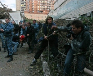 Охоронці з фірми "Грегос" побили активіста громадської організації "Збережемо старий Київ" Ігоря Луценка, забрали відеокамеру. Постраждали також фотожурналісти з інформаційного агентства УНІАН та газети "Комерсант", які знімали бійку.
