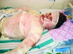 — Скандал стався через дитину, — ледь говорить Олена Каргаполова, 22 роки. Вона лікується у Хмельницькому опіковому центрі. — Це йому його родичі доложили.
