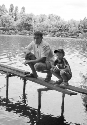 Ярослав Білик із сином Іллею на ставку цукрового заводу в місті Жашків на Черкащині. Хлопчик каже, що вони не поїдуть на місце, де у батька стріляв рибний інспектор