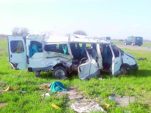 Розбита ”газель” стоїть біля траси Сімферополь — Красноперекопськ біля села Воронцівка у Криму. В неї врізався вантажний мікроавтобус ”Мерседес Спринтер”, водій якого не виконав вимоги чотирьох дорожніх знаків