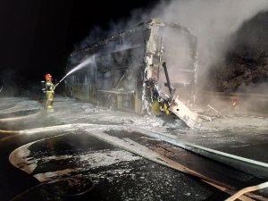 — Зайнялося у двигуні. Полум'я охопило весь автобус. Він згорів повністю і пропалив дірку в асфальті. Після інциденту права смуга руху в напрямку Катовіце була заблокована, — розповіли в дорожній комісії польського Баліце. — Евакуйованих людей доставили в кімнату обслуговування пасажирів, звідти їх пересадили на інший автобус.
