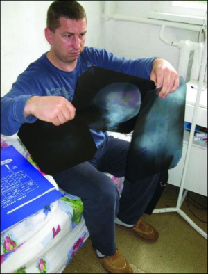 — Викинули нас із машини, як бандюг у фільмах, — розповідає Віктор. Він третій тиждень лікується у Липовецькій райлікарні. — Кинули обличчям на землю. Ми в болоті були, бо якраз дощ ішов. Вивернули машину наізнанку. Один із міліціонерів ударив мене автоматом у правий бік, потім у голову, обличчя. Шукали наркотики, зброю. Нічого не знайшли. Потім відвезли до райвідділу. Протримали там кілька годин. Машину й права забрали. Я викликав собі "швидку". Звідти на таксі в Липовець, бо треба було терміново їхати у лікарню.