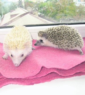 — Їх можна випускати й по квартирі. Але малі, потім важко знайти. Хоч у нас маяком їхнього місцезнаходження є кішка. Їжачок біжить — і вона за ним. Якщо зупинився, кішка лягла. Їжаки люблять гратися плюшевими іграшками. Носять у зубах, м'ячики носами катають по підлозі. Люблять залазити в труби, рулони з-під туалетного паперу.