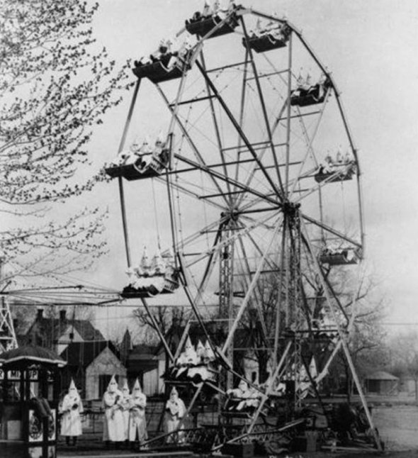 Члени расистської організації Ку Клукс Клан влаштували корпоратив у місті Кенон-Сіті у Колорадо. Їх сфотографували на колесі огляду.