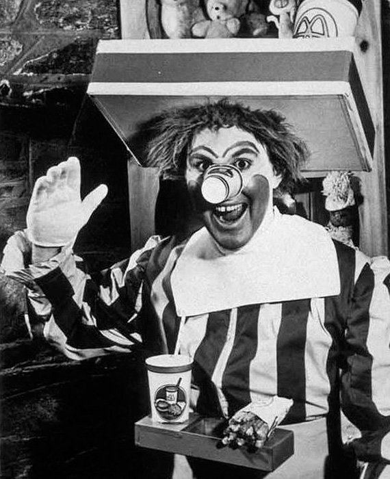 Так у минулому столітті виглядав талісман мережі фаст-фуду Рональд Макдональд.