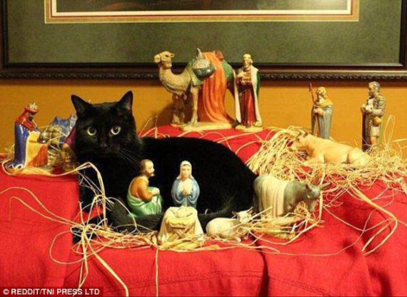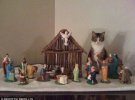 Деякі коти дрімають у яслях, а деякі між трьома мудрецями.