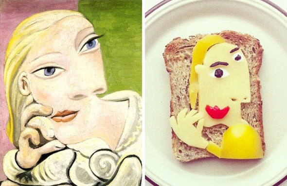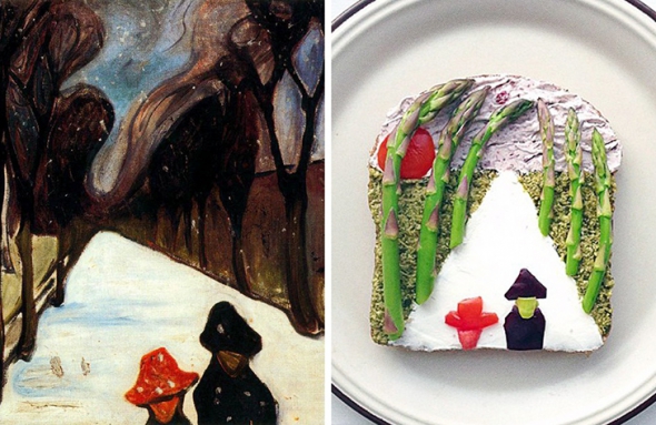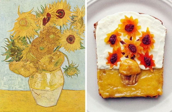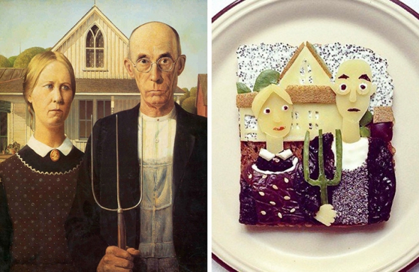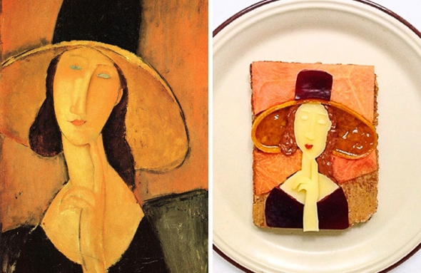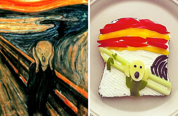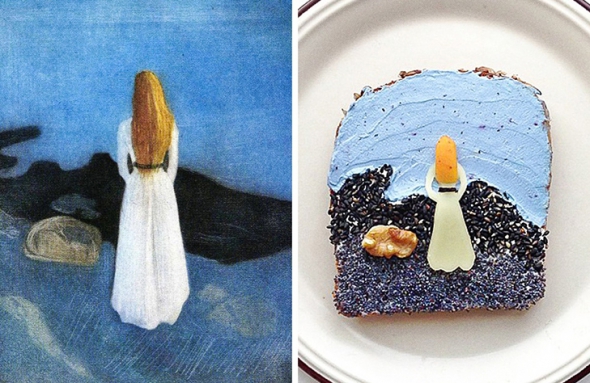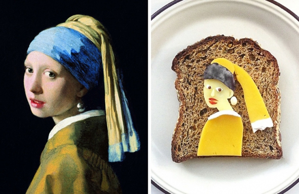 Норвезька художниця Іда Сківенес створює з хліба та інших звичайних продуктів "копії" відомих у всьому світі картин. Потім вона фотографує результат та з'їдає витвір.