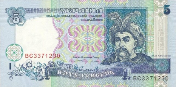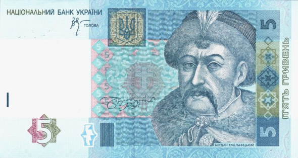 На 5 гривнях завжди зображували гетьмана Богдана Хмельницького в його знаменитій шапці з пером страуса. Банкнота завжди була пофарбована у сині тони. Чим новіші 5 гривень – тим світліше її дизайн. Незважаючи на те, що зовнішній вигляд купюри міняли всього двічі, зміни досить відчутні.