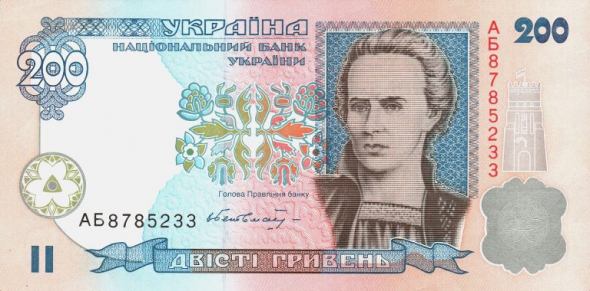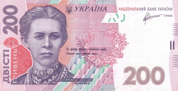 200 гривень з Лесею Українкою змінювали зовнішній вигляд тільки один раз, але нова купюра стала помітно більшою у розмірах. Старий зразок мав параметри 133х66, а новий – 148х75.