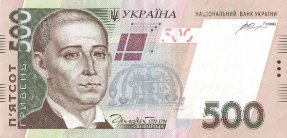 500 гривень з'явилися в Україні найпізніше – у 2006 році. На них зображений філософ Григорій Сковорода. Дизайн купюри змінювався двічі.