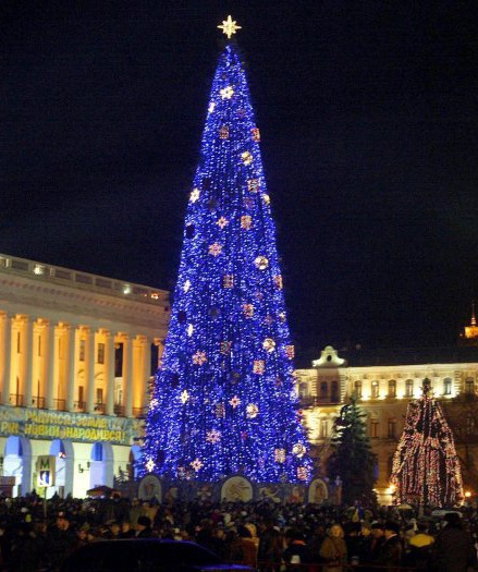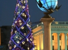 Цьогоріч у Києві презентували high-tech ялинку. Її встановили на території Національного експоцентру України поблизу метро "Виставковий центр".6-ярусне новорічне дерево зроблене зі світлодіодних екранів. Важить 2 тонни.