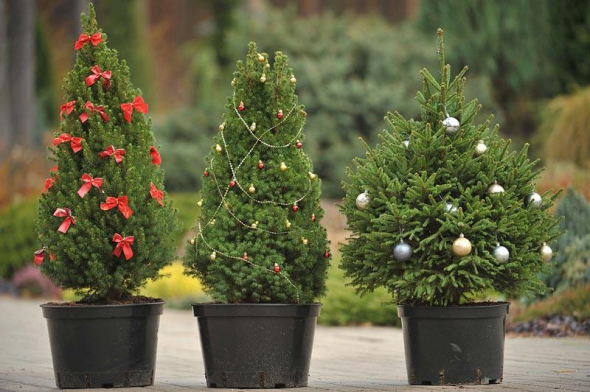 Сьогодні популярності набули ялинки в горщиках. На відміну від штучних дерев, мають справжній лісовий запах. Не обсипається хвоя. Навесні рослину можна посадити в грунт та дати їй нове життя.