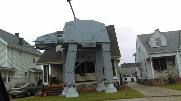 У м. Парма в Огайо. США місцевий мешканець Нік Майєр встановив на своєму подвір'ї двоповерхового ходока АТ-АТ із "Зоряних воєн".
