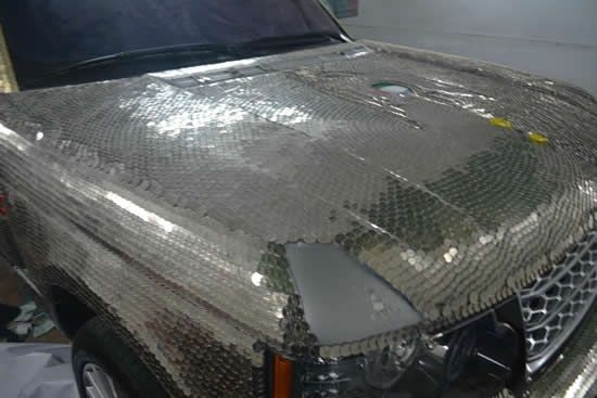 У Дубаї та Абу-Дабі складно вже здивувати когось своєю останньою версією "Ferrari" чи "Porsche", коли по вулицях вони їздять сотнями. Покриття машини золотою фольгою - також пройдений варіант, причому деякі автомобілі особливо заможних власників мають по декілька шарів такого покриття. На щастя, група ентузіастів з "Cars Coins" придумала ще один спосіб, як допомогти товстосумам трохи полегшити їхні кишені, вистеливши корпус їхных автомашин тисячами різноманітних монет. Так, остання їх робота - це "Range Rover 2013", покритий 57 412 старими дірхамами ОАЕ.