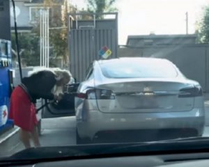 У мережі стало вірусним відео з дівчиною, яка намагається заправити свою машину. Автолюбителька хотіла залити бензин в електромобіль Tesla. Забавні кадри зняли чоловіки, які сиділи у машині позаду блондинки і чекали своєї черги.