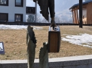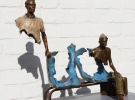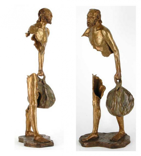 Бронзові скульптури мандрівників різної стати і віку - всі з чемоданом у руці: на місці дотику чемодану до ноги скульптура і кріпиться. Ці скульптури майстра називають "рваними", а його самого - генієм рівноваги.