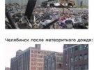 Падіння метеориту в Челябінську, внаслідок якого постраждали сотні людей, стало і благодатною темою для жартів. У соціальних мережах з'явились фотожаби, які у гумористичному ключі подають цю тему, пише Українська правда.