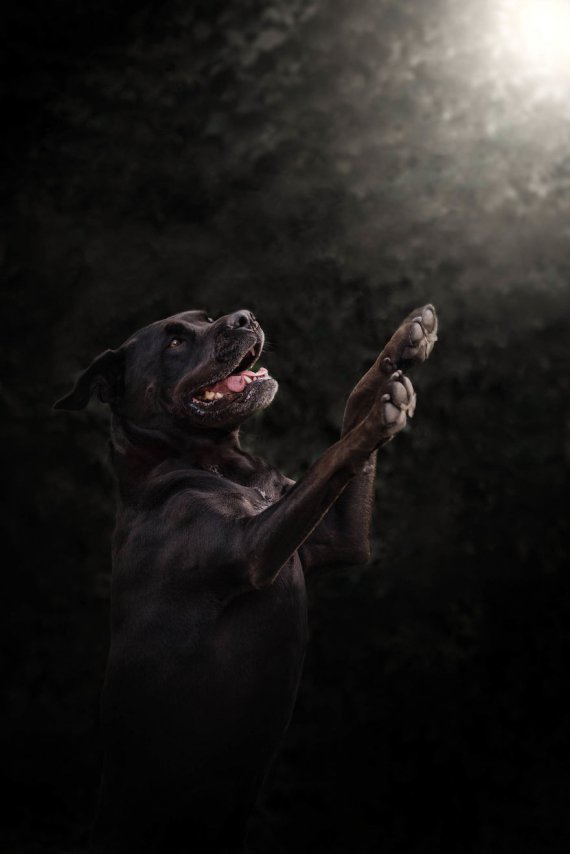 "Погоня за тінями", фотографічна подорож чорних всиновлених тварин - це довгостроковий проєкт, де фотограф знімає на камеру чорних тварин у відтінках сірого.