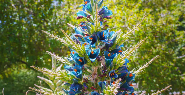 Рослина сапфірова вежа (Puya alpestris) родом із чилійських Анд, вона росте дуже повільно і на її цвітіння можна чекати десятиліттями. Це далекий родич ананаса з сімейства бромелієвих, який зазвичай росте в горах на висоті до 2200 метрів. Проте один екземпляр сапфірової вежі 20 років тому потрапив до колекції ботанічного саду Бірмінгема та зумів прижитися в тепличних умовах.