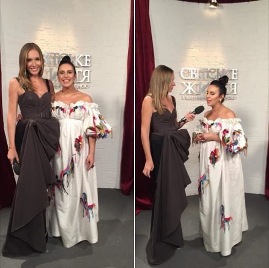 Співачка Джамала опублікувала у своїх соціальних мережах фотографію з ведучою програми "Світське життя" Катериною Осадчою. Вагітна співачка позує у білій сукні, прикрашеній ручною вишивкою з різнокольорової вовняної нитки. Сукню спеціально для Джамали створила команда стилю телеканалу 1+1, - написали в повідомленні.