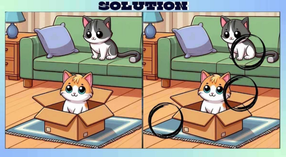 У цій головоломці треба знайти три відмінності між майже ідентичними картинками кошенят. У вас всього 25 секунд.