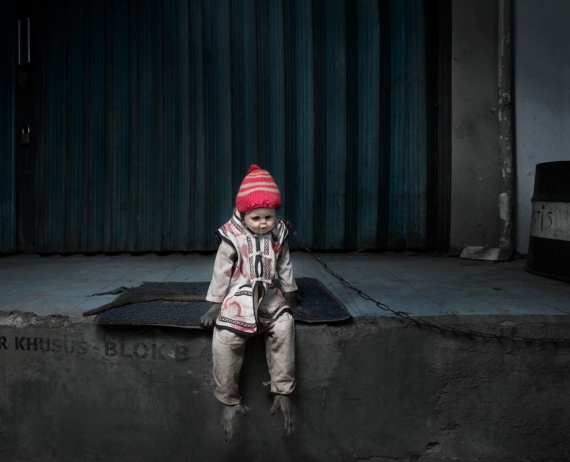 Сакса спеціалізується на портретах, але у 2012 році він потрапив до Індонезії і вперше побачив там вуличних макак , яких змушували грати різні ролі на потіху натовпу. Восени минулого року за допомогою індонезійського журналіста Сакса почав набагато глибше досліджувати особистості так званих " господарів " цих бідних тварин. Тоді Сакса сфотографував цих макак "в образі", який і вразив його найбільше. Найчастіше одягнені в дитячий одяг і лялькові маски, ці мавпочки представляли собою досить моторошне видовище. Прив'язані ланцюгами та визираючі з-за своїх масок, ці тварини найкраще уособлюють найбільший страх людини: бути поневоленим і контрольованим.