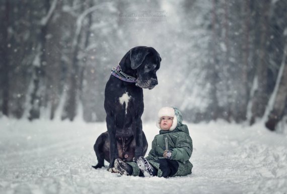 Фотограф Енді Селіверстофф зробив серію фото з гігантськими собаками та їх крихітними господарями. Назавцей проект "Маленькі діти і їх великі собаки".