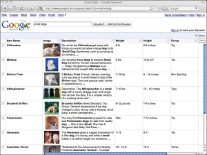 Google Squared збирає інформацію на основі користувальницького запиту і представляє її у вигляді інтерактивної таблиці, на відміну від звичайних пошуковиків, які у відповідь на той чи інший запит видають лише сторінки із сайтами по темі.