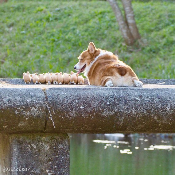 Харизматичний коргі Еріко заполонив Instagram. Його хазяйка з Японії обирає цікаві локації та атрибути. Зокрема, міні-версії Еріко, які пливуть за ним.