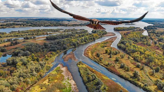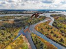 Дрон зробив фотографії, як сокіл із цікавістю розглядав літальний апарат. Квадрокоптер літав у цей час над мальовничими пейзажами на Черкащині.