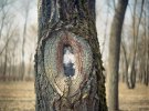 Така ідея дівчині спала на думку, коли вона побачили зріз на дубі біля свого будинку. Він здався дівчині ідеальною рамкою для фото. Згодом вона оздобила знімками всі дерева в парку.