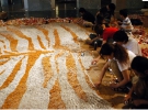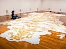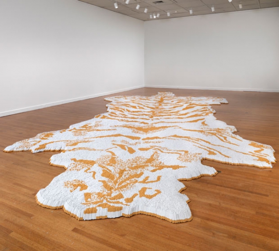 Автор створює тигрові шкури, викладені з сигарет різного розміру та кольору фільтрів.