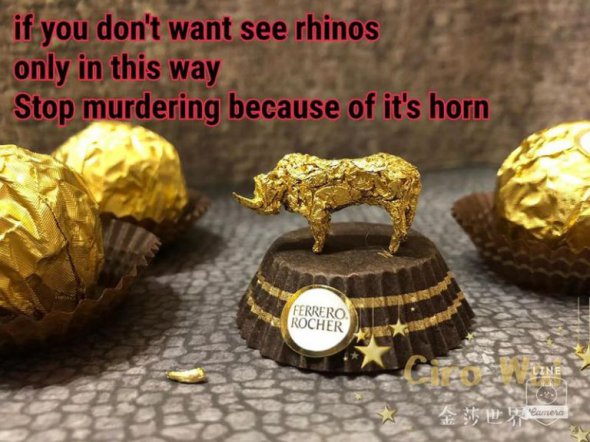 "Якщо ви не хочете милуватися носорогами тільки в цьому вигляді - припиніть вбивати їх через роги" - напис на одній з фотографій.