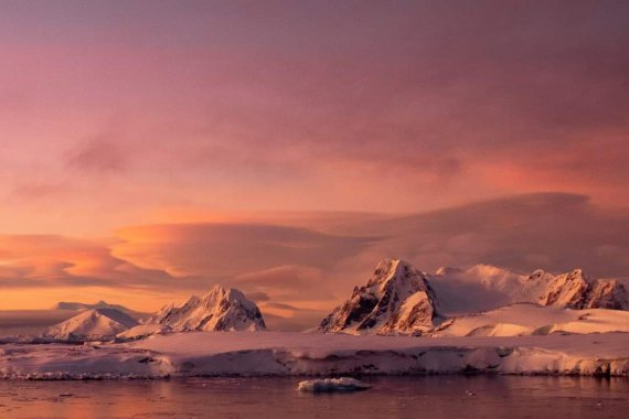 Рожевий присутній в Антарктиці: це колір світанків та заходів сонця в гарну погоду. Коли небо не затягнуте хмарами.