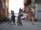 Камері вдається зафіксувати загрозливі стійки, помахи ногами, стрибки з переворотами в повітрі і майже повноцінні бійки котів.