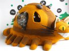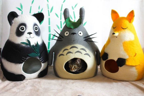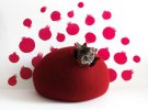 "Усе почалося декілька років тому, коли ми взяли собі маленьке кошеня на ім'я Тара. Нам здалося, що було б чудово зробити для неї особистий простір. Я вмію методом валяння вовни робити одяг й іграшки, тож ми вирішили зробити їй вовняне ліжечко. Так і з'явилося наше перше творіння. Воно мало кумедну форму, не було надто надійним і не вирізнялося високою якістю. Однак наша кішечка його одразу облюбувала. Це нас дуже надихнуло", — розповіла Катерина в блозі на boredpanda.