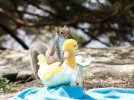 Активна білка вибрала собі другом плюшеву іграшку. Вона весело з ним грається, чим самим дратує кішку.