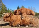 Шотландська високогірна корова відрізняється від решти порід довгою шерстю, яка захищає тварин холодному кліматі від дощу, вітру та снігу.