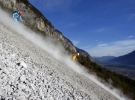 За 45 кілометрів на захід від Інсбрука, близько мальовничого села Хаймінг лижники знайшли чудове місце, щоб випробувати своє спортивне обладнання, незважаючи на те, що навколо немає жодної засніженої ділянки. Відчайдушні екстремали пішки піднімаються на покритий камінням схил і спускаються з нього на лижах.