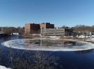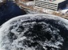 У США на річці в місті Вестбрук штату Мейн, утворився велетенський крижаний диск, що обертається. У діаметрі він має більше 90 м.